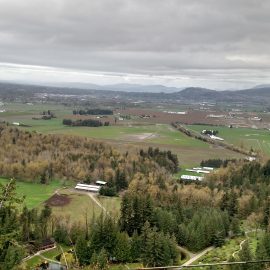 This past weekend I went on a prayer retreat. On Saturday afternoon there was time to get outside and enjoy the beautiful grounds of the retreat center. After much sitting, it felt good to get up and move about. Heading out on a wooded trail, I was tenetatively on a quest to climb a hill called Haystack. I say tentatively because I knew it was a tough climb and I wasn’t sure I was up to it. “No,” I decided, “I’ll just take the loop trail and play it safe. Besides,” I reasoned, “with all the rain we’ve had, the trail is probably too muddy anyway.” However, after about 30 minutes on a gentle but steady incline, the trail forked. A sign read, “Haystack Connection.” I hesitated but took the fork to Haystack. And, yes, it was muddy. And it was steep. Really steep. I stopped often to rest and catch my breath. And then I carried on. After another 30 minutes or so I finally crested the peak. Oh my! The view from the top was breathtaking! You can see a small portion of the sweeping view overlooking the Frasier River Valley, looking into British Columbia from Washington State. My shoes were caked in mud, my quads were a little trembly, but I felt victorious and happy with my photographic trophy. Now, a little hill-climbing is not going to win the prize for which Jesus has called me heavenward, but it did serve as a reminder that big rewards often require a big effort.